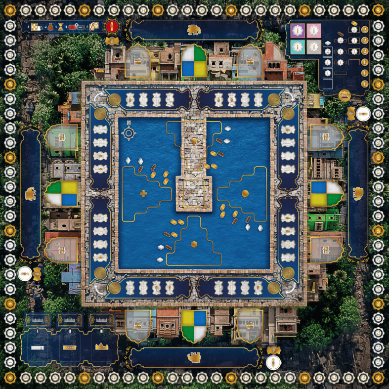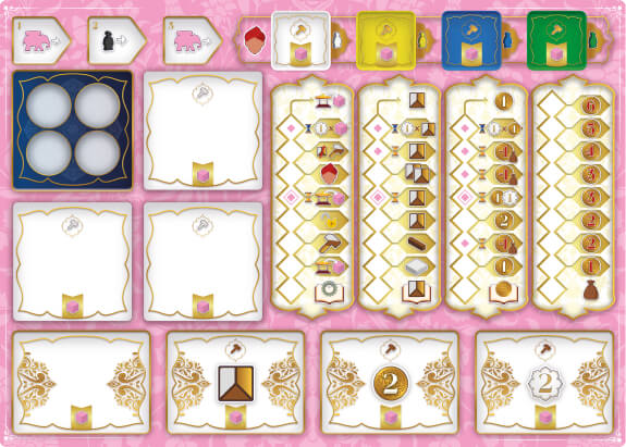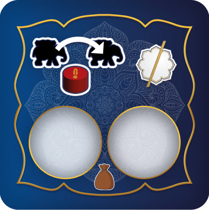Размещение рабочих реализуется посредством механики манкалы (пять племен, траян), которая синхронизирована с механикой ронделя при перемещении своего слона. Грамотное комбинирование этих двух механик принесет игрокам максимальную эффективность и путь к победе!