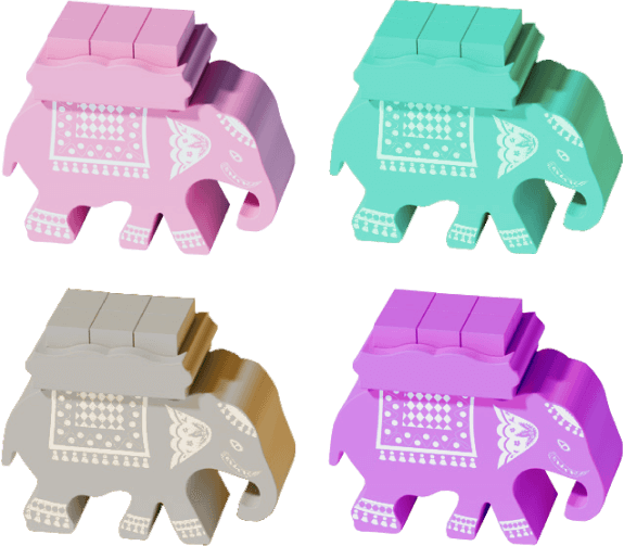 Игра в абсолютно красивейшей коробке наполнена множеством деревянных и картонных компонентов, включает в себя большое игровое поле и огромных деревянных слонов с шёлкографией, которых вы активно используете в процессе игры.